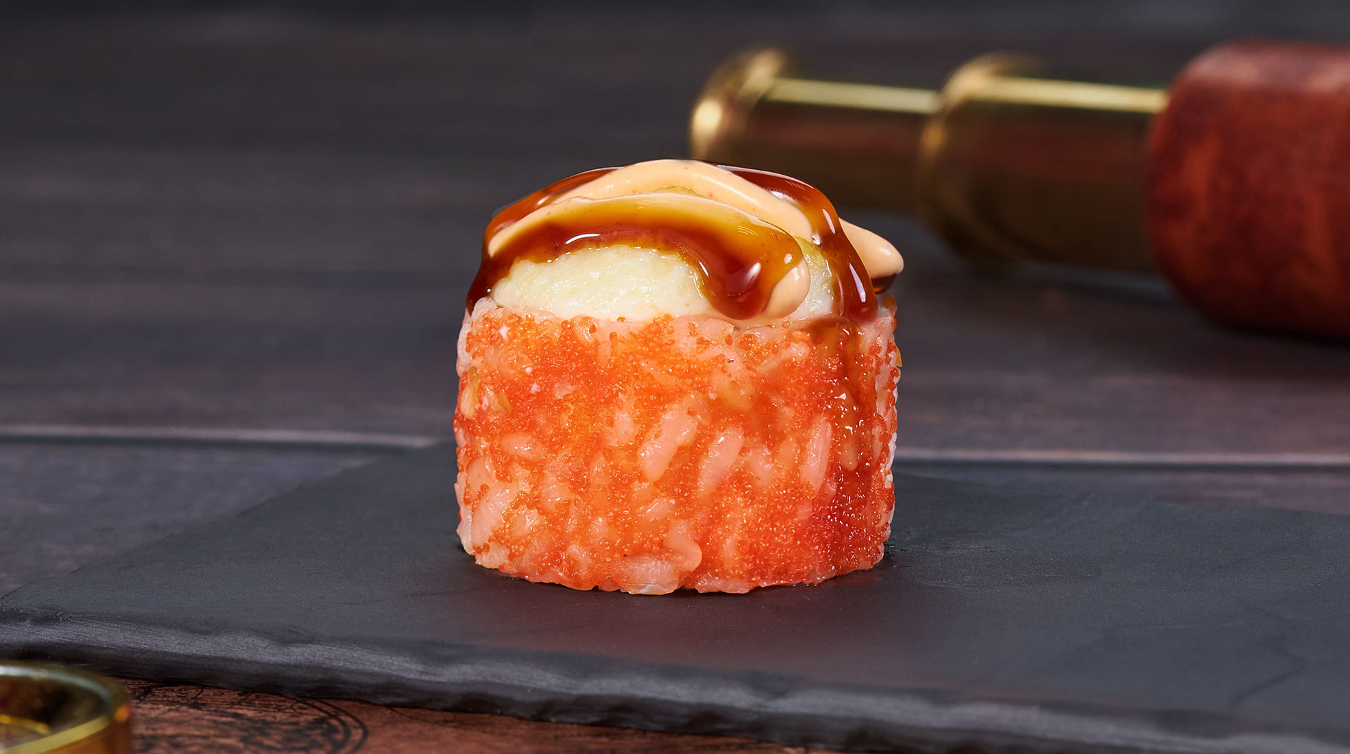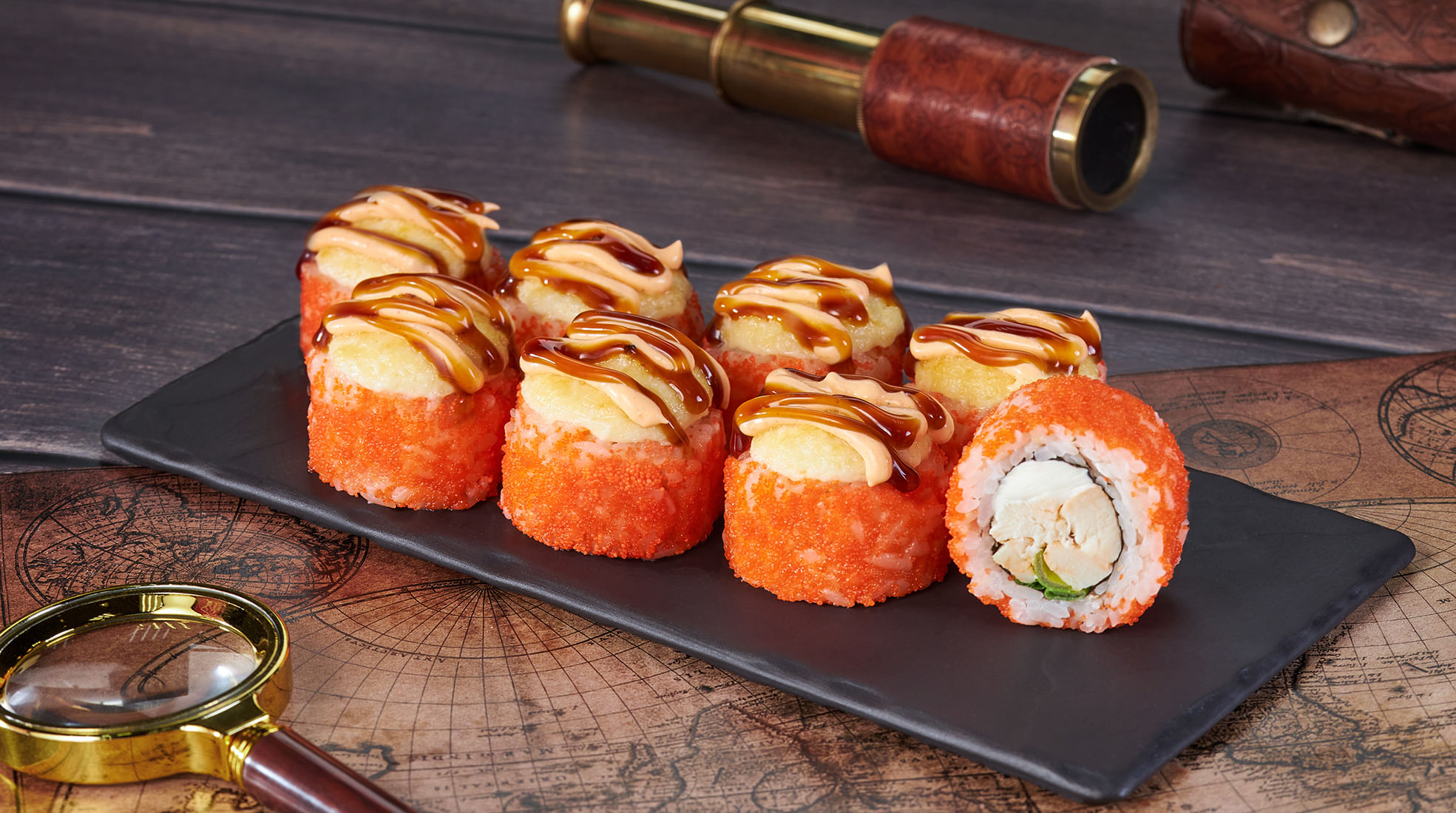 Состав: Курица, крем чиз, икра масаго, замес монако, соус унаги, соус спайси, лук зеленый, рис, нори. Не забудьте заказать имбирь, васаби и соевый соус. Они не входят в стоимость заказа. *Внешний вид блюда может отличаться от фото на сайте.